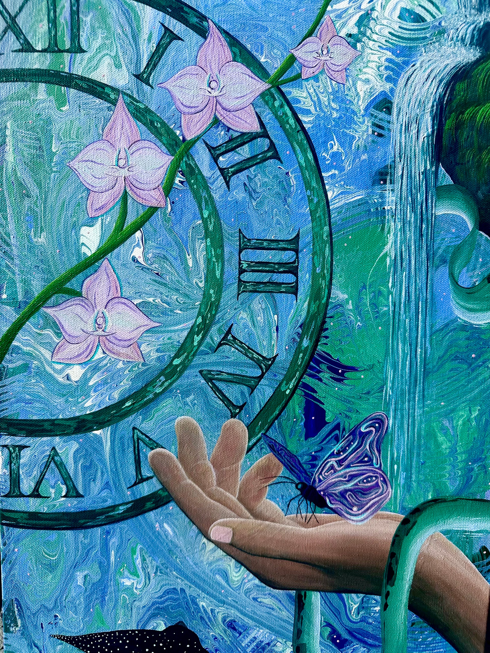 “Beyond Conscious Thought” invites the viewer into a dreamlike realm where time dissolves and meaning flows beneath the surface. Through surreal symbolism and layered abstraction, the painting explores the space between awareness and intuition. It’s a quiet meditation on surrender, transformation, and the unseen forces that guide us when logic no longer leads the way.